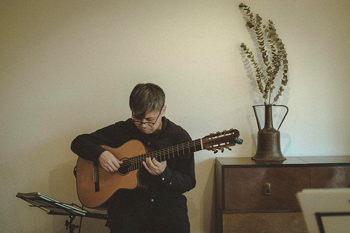 高校でクラシックギターに触れ、セゴビアやタレガなどの現代音楽に傾倒。